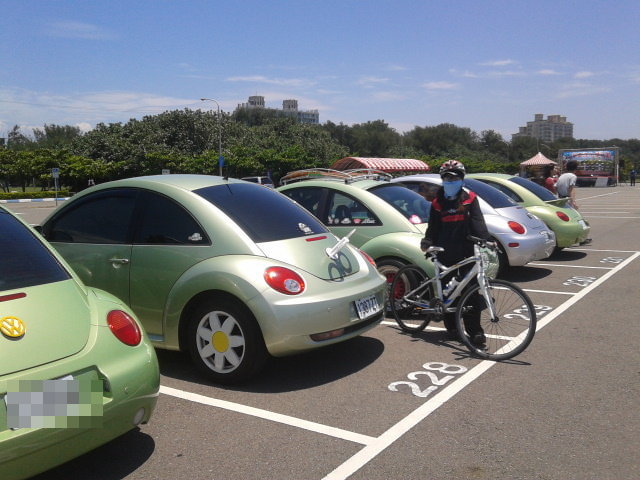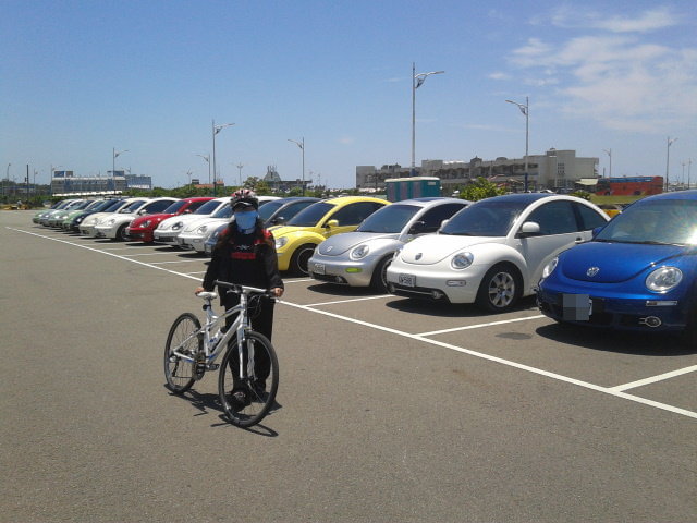 等得很無聊~後來他還乾脆折返回來再陪我騎一次~