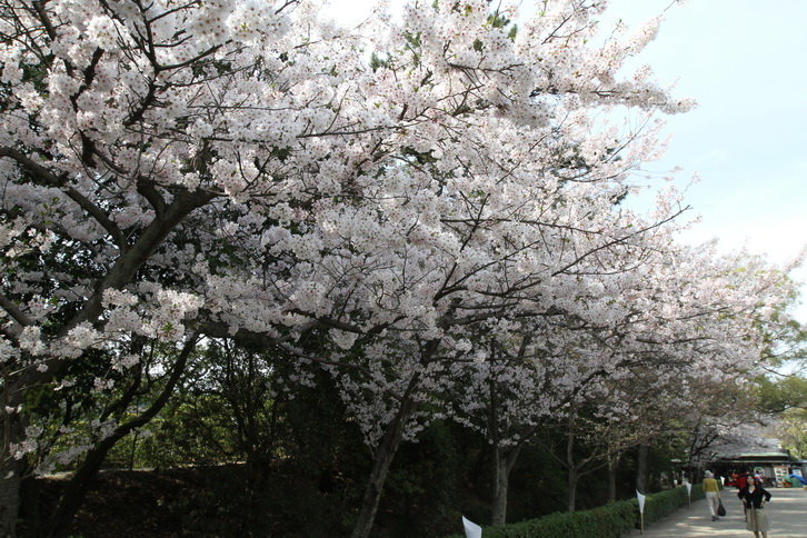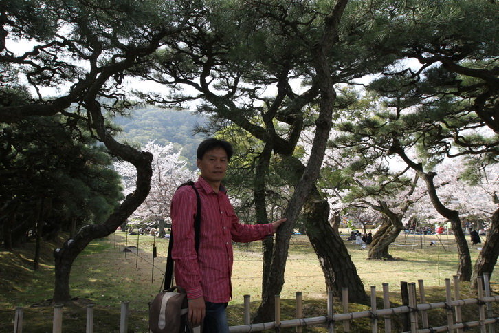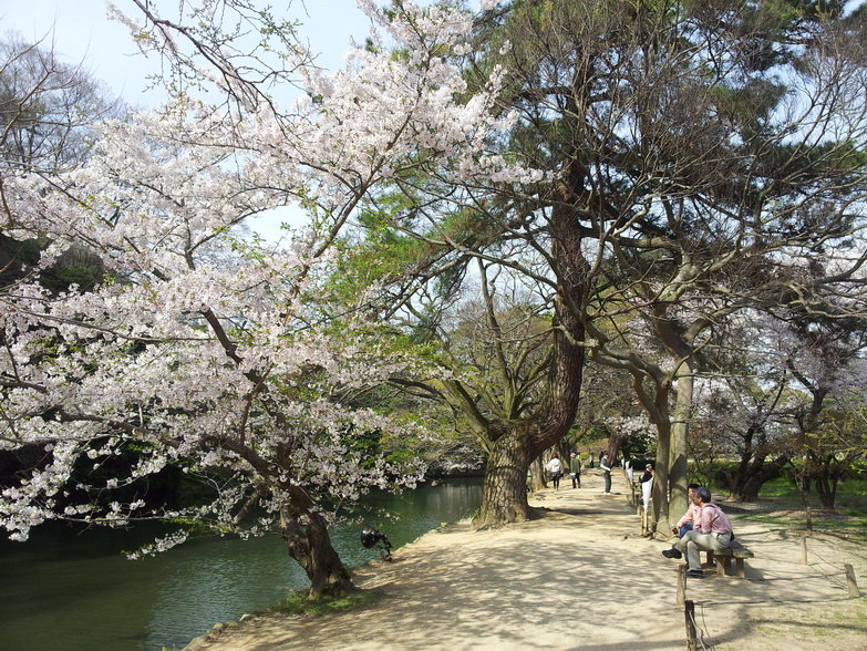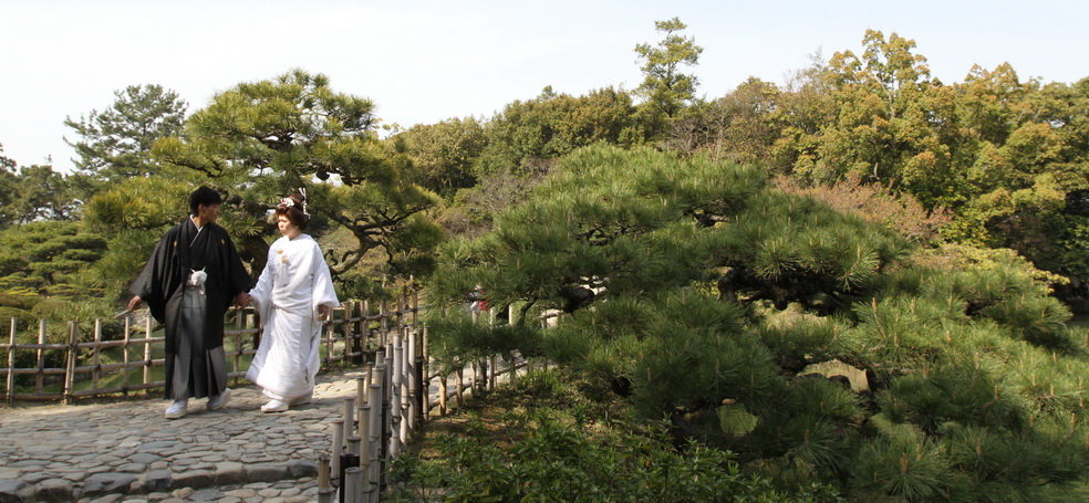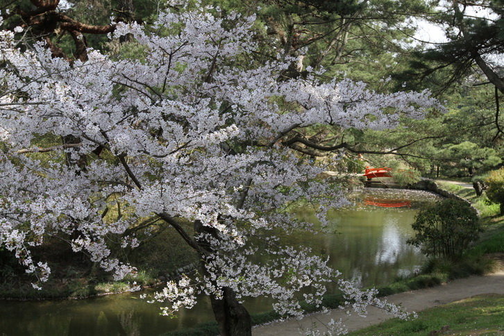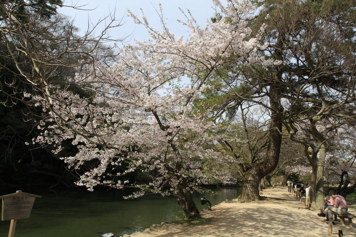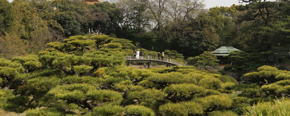 以黑松為主,還有多彩的樹木,春季的櫻花,初夏的蓮花和菖蒲,冬季的山茶等