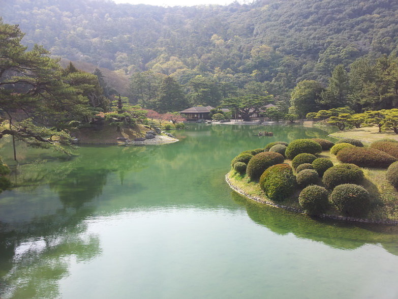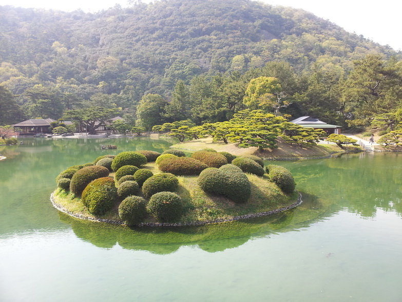 栗林公園分為南北兩個庭園,園區中共有6處水池與13處山丘,