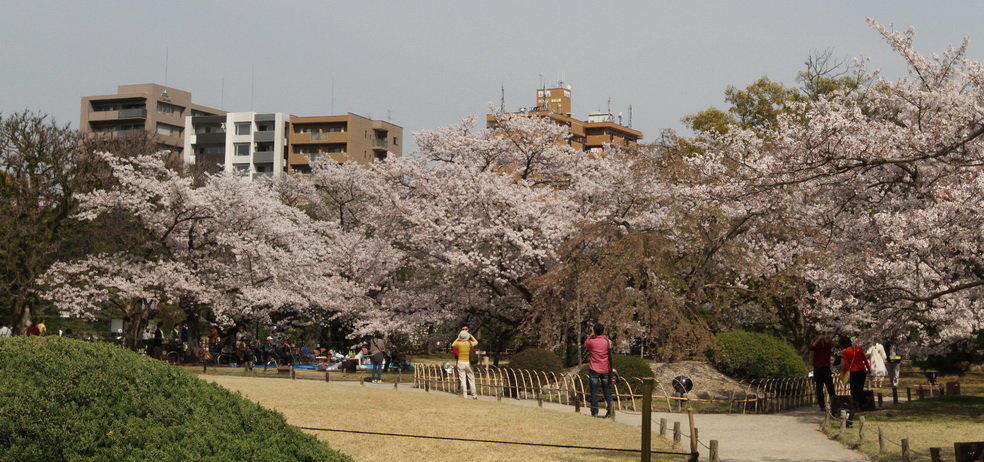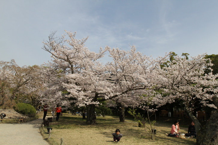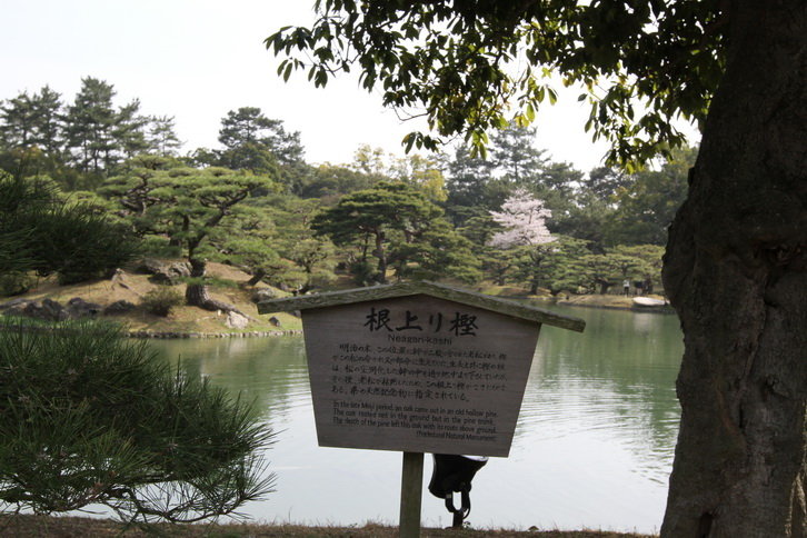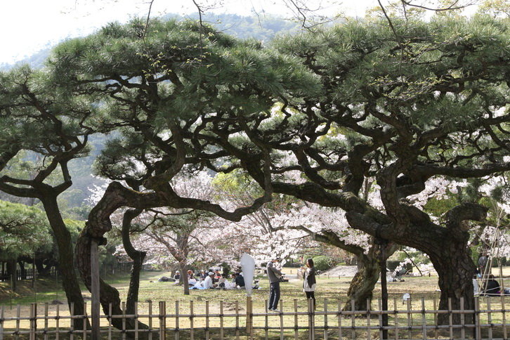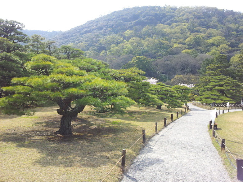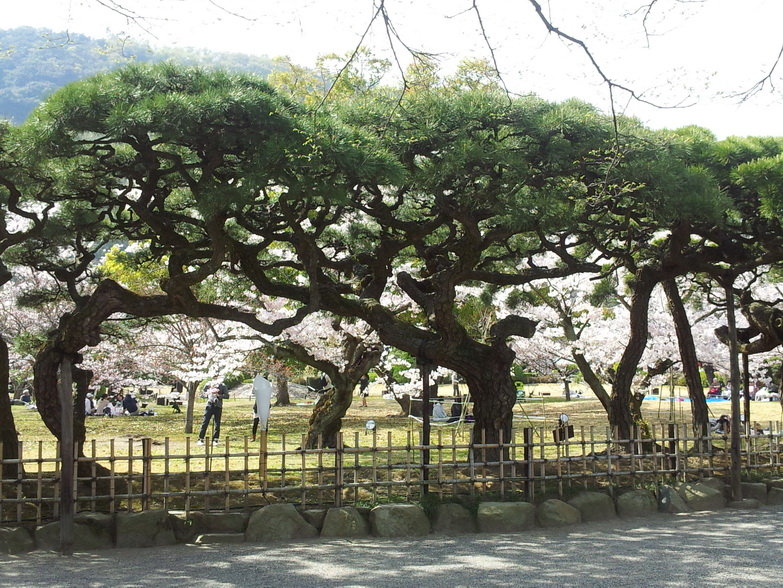 以黑松為主,還有多彩的樹木,春季的櫻花,初夏的蓮花和菖蒲,冬季的山茶等