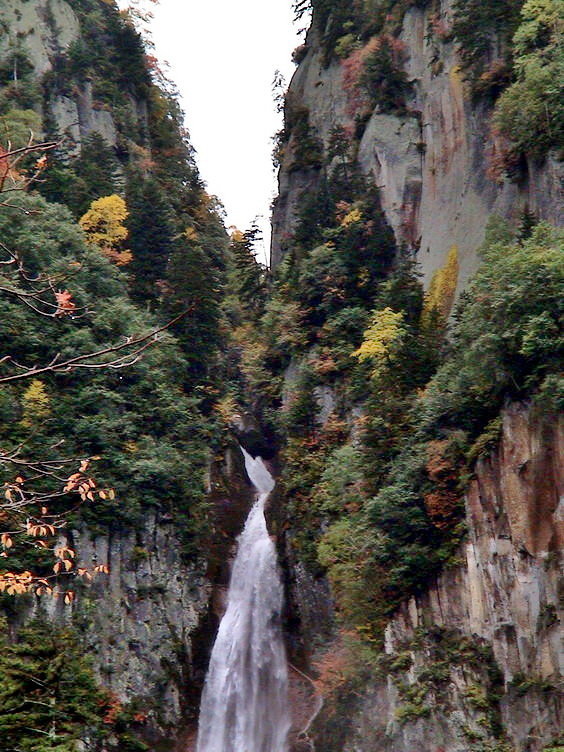 (流星瀑布~有如夜空中閃耀的流星快速奔流,氣勢雄偉有如男性,被稱為雄瀑布.