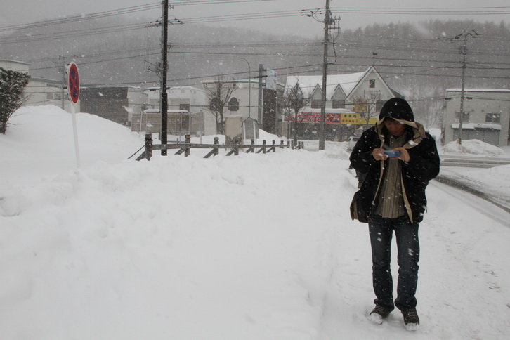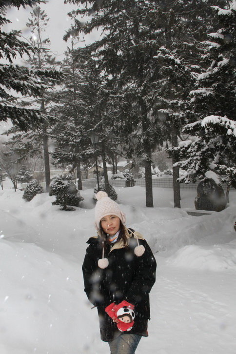 一出餐廳~~感受著這次北海道旅遊 最大的風雪!!
