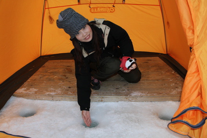 固定一個姿勢釣魚,而且在冰天雪地裡~~會"粉冷" "粉凍" 吧!!