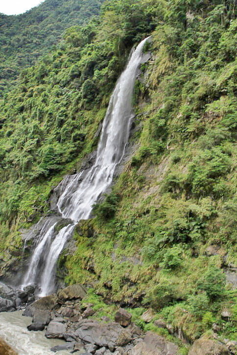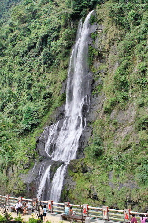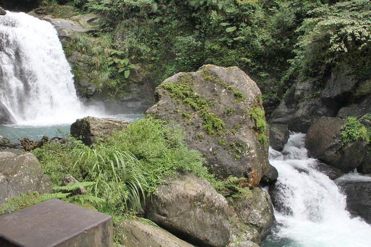 遠望瀑布有如白鍊一樣,當雨量充沛時烏來瀑布會分成兩道飛泉.