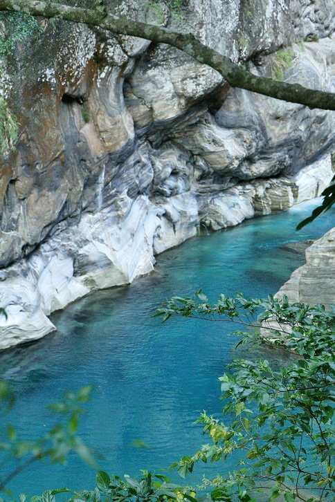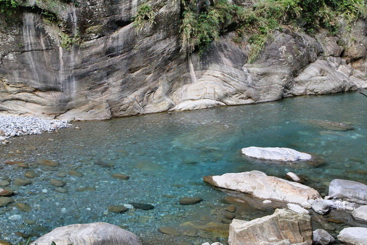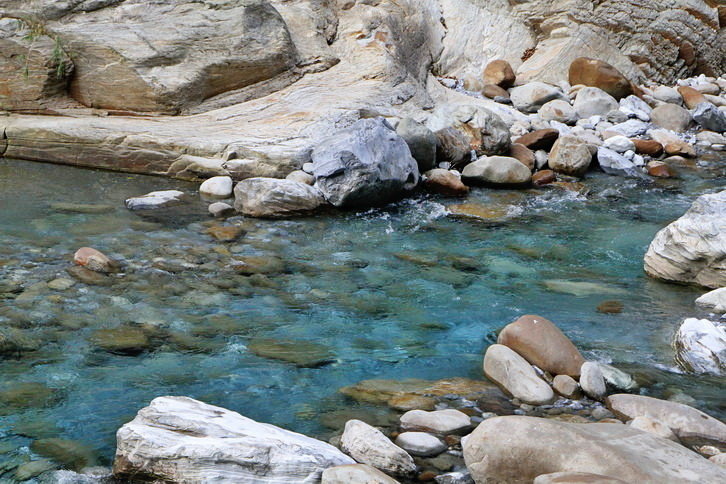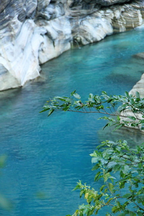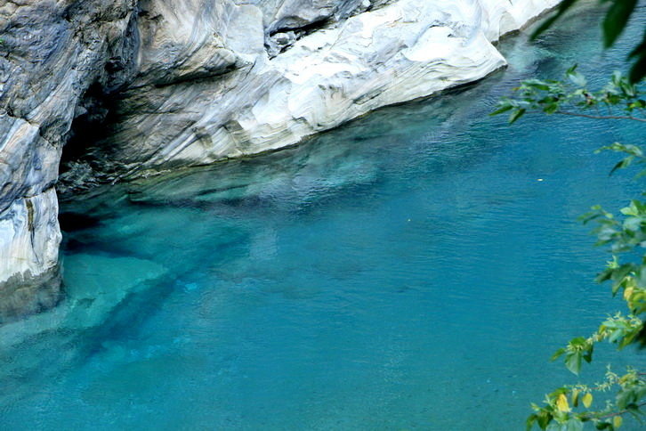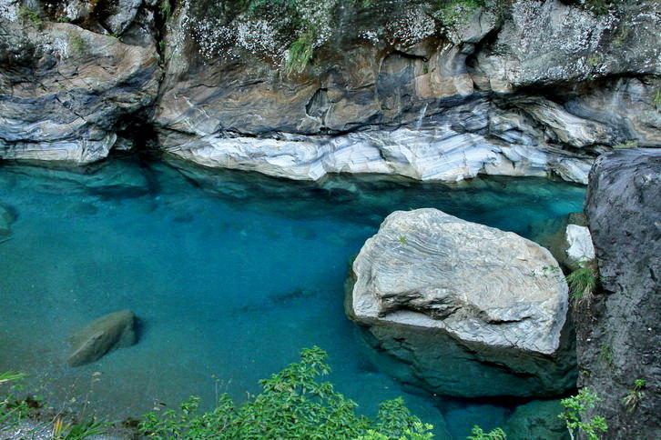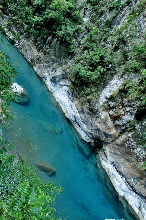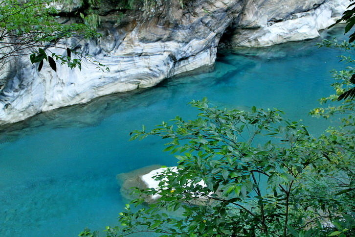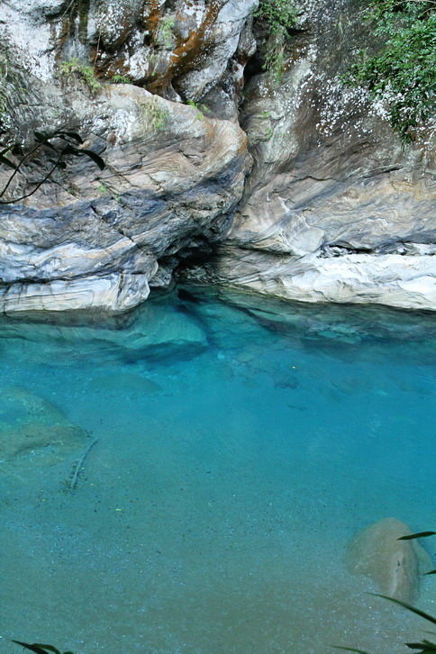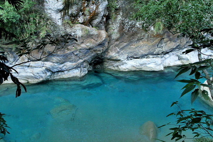 這藍與綠~全是因為溪水中的微酸溶解大理岩中碳酸鈣成分..