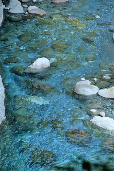 因此溪水常呈現如此如寶石般的藍綠..