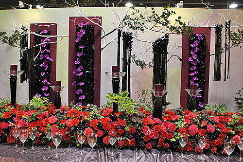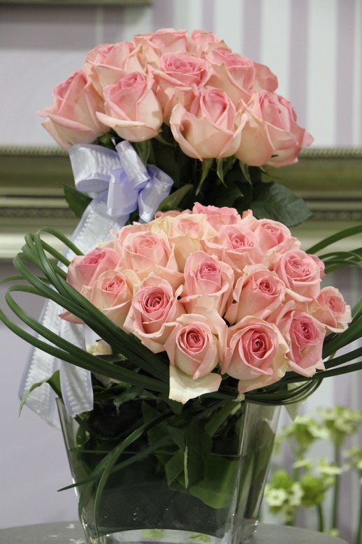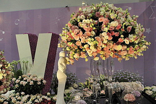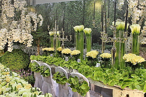 白、綠色系的玫瑰和火鶴打造高貴典雅的情人空間..