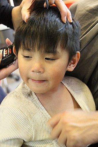 ps:頭髮其實還沒剪好,回家丞立還拿剪刀,再幫鈞鈞加減再修一下呢!!
