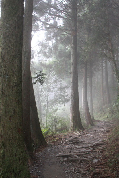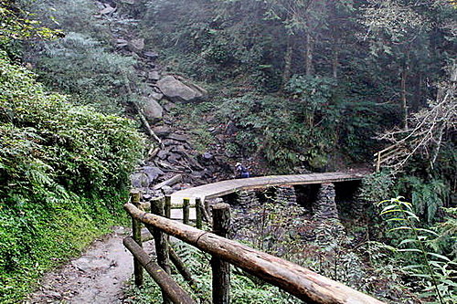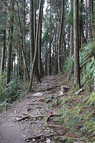 這條登山步道原是伐木時期的運材台車路,幾乎沿著等高線闢建,