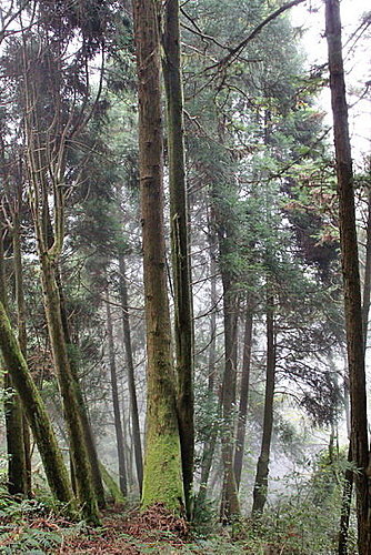 因位於中高海拔地段,常有雲霧繚繞,充滿著神祕的色彩,所以稱為觀霧.. 檜山巨木群步道是觀霧國家森林遊樂區最具代表性的一條步道.. 檜山巨木群步道,有兩個入口,分別在樂山林道的1.2公里及6公里處.. 單程的巨木群步道~~是從6公里處下車,開始往下走,約4公里的單程路段.. 雖然較短,但因從下車處到巨木群,路程較陡,要特別小心.. 而且若自行開車,不太適合,因為返回停車處,是個問題. 來回的巨木群步道~~是從1.2公里處下車,開始走入步道,單程2.8公里.. 可走到巨木群,來回5.6公里,因路程平坦好走,風景美麗.. 也是大多數人的最愛 我們沒有接駁車,當然是走~~來回的巨木群步道囉!!