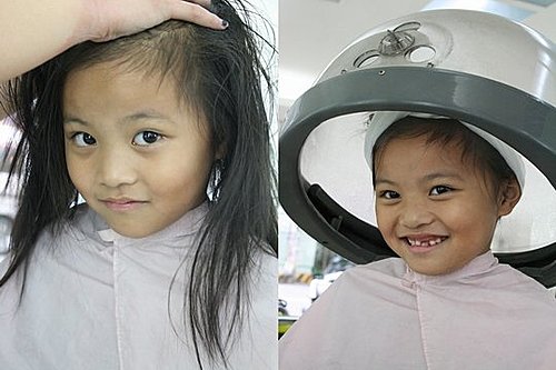 當然~頭髮下次不會拖太久~才帶妳去理髮啦!!