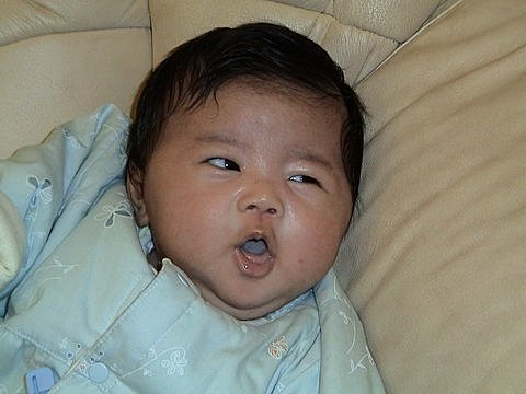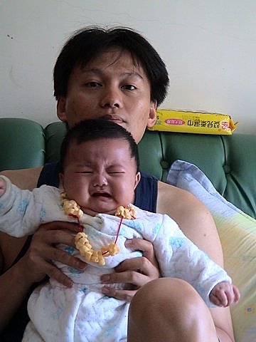 92/5/12 出生滿四個月 胸前掛串餅乾喔!!