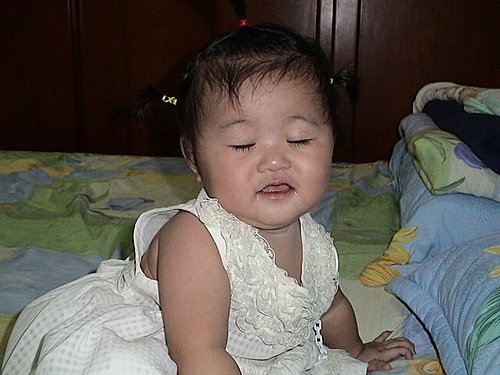 記得出生8個月前~每天晚上爸爸都要搖她很久,才能抱到床上..