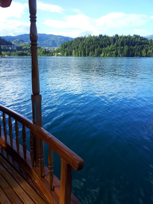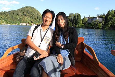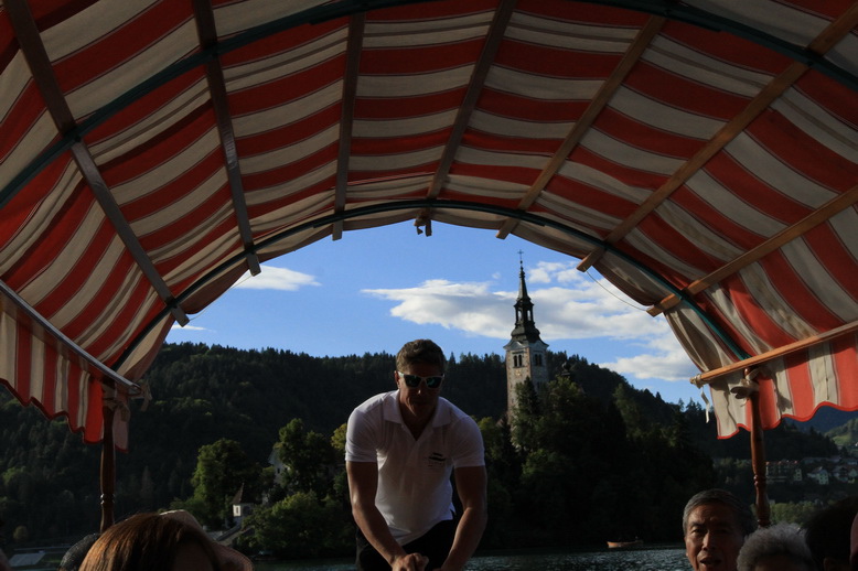 離開 布列德湖 的湖心島(布列德湖島後)~~我們繼續搭乘 這裡專有的 搖櫓渡船~~準備上岸