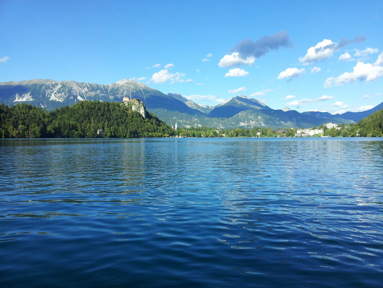 湖的四周群山環繞,林木蒼鬱,布列德湖就像是掉落在群山之中一顆耀眼的藍寶石那樣地璀璨明亮
