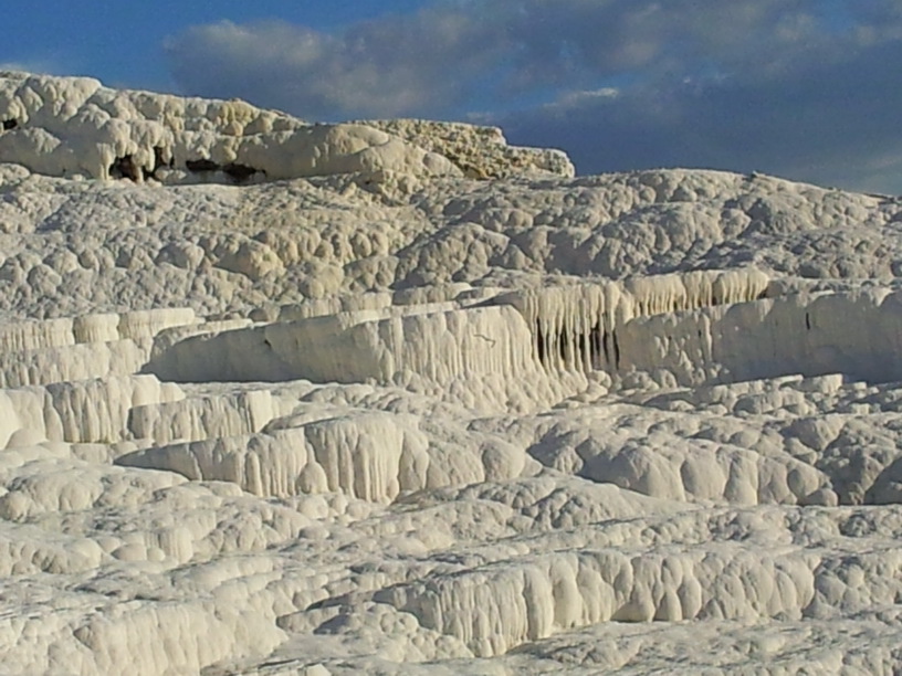 幾千年下來形成今日層層疊疊,既像棉田,也像雪地般的景觀