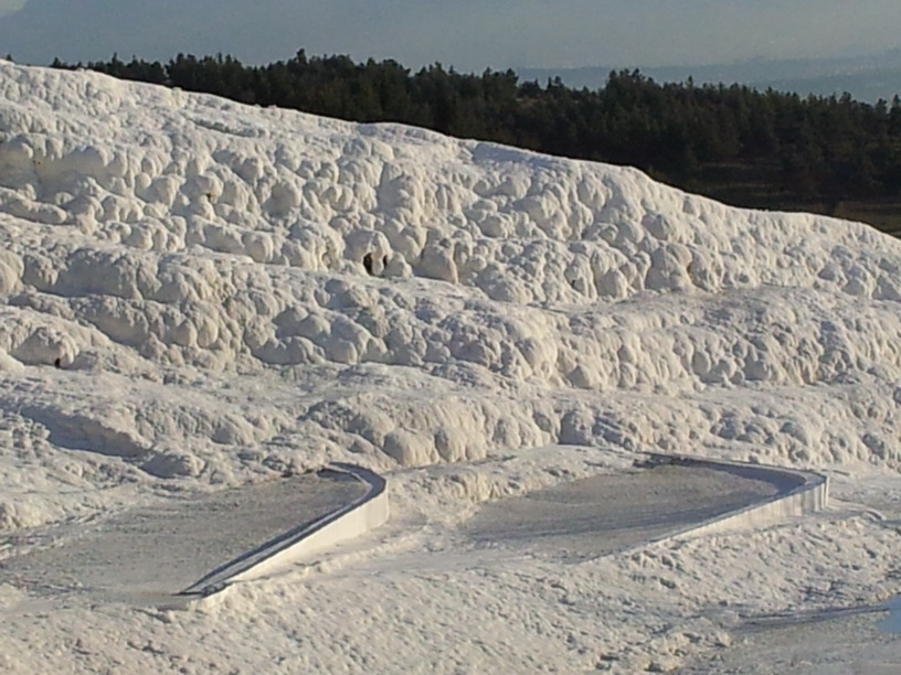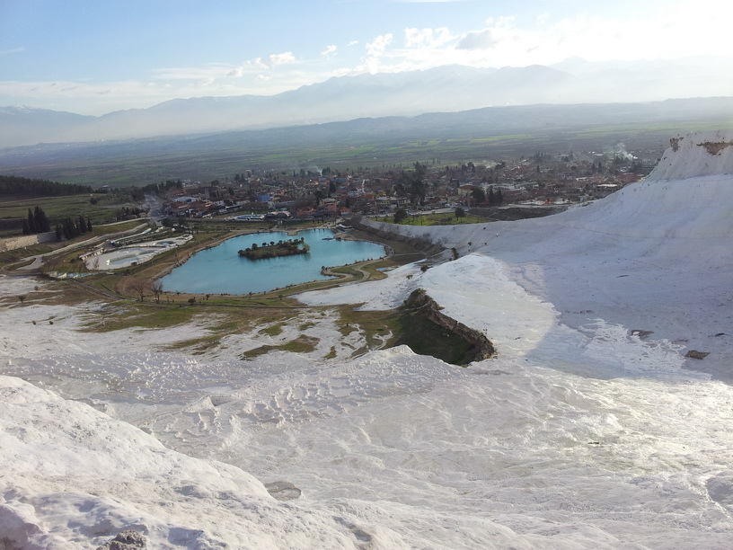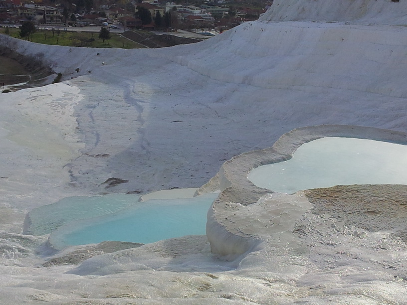 kale是指城堡,但Pamukkale並不是堡也看不到棉花或棉田,是個長得像堡的白色石灰棚山谷地形