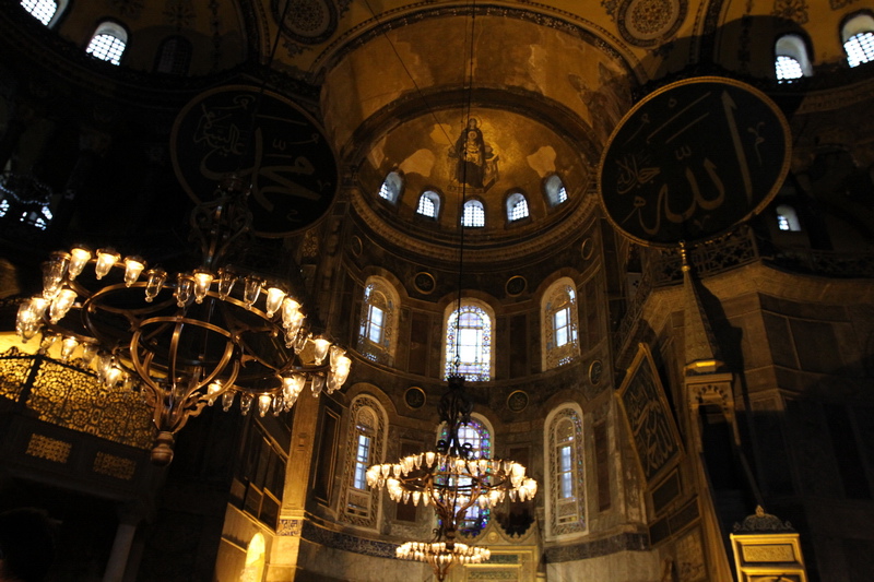 聖索菲亞大教堂裡的基督像被土耳其人撥開了一半,基督教千年前的榮耀確實曾閃耀在這片土地