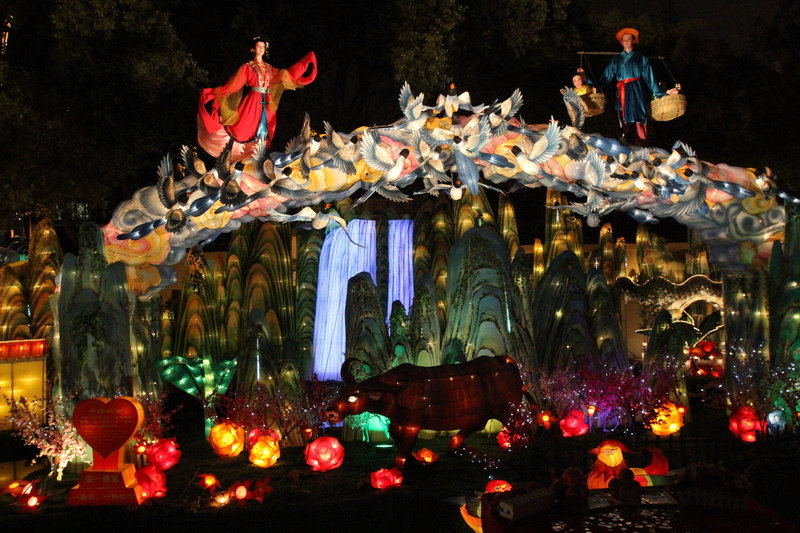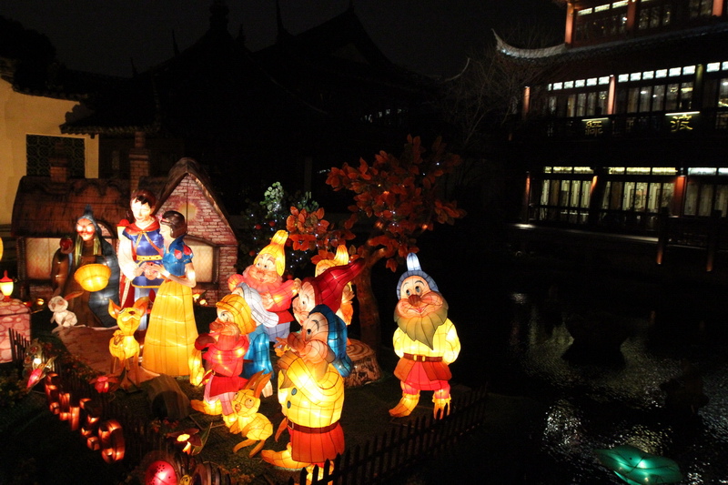 這次的燈會中西結合,即有中國傳統的“牛郎織女“虹橋相會等、也有西方的童話故事“白雪公主”等