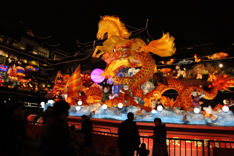 以“龍馬精神”為主題的燈組在上海豫園亮相
