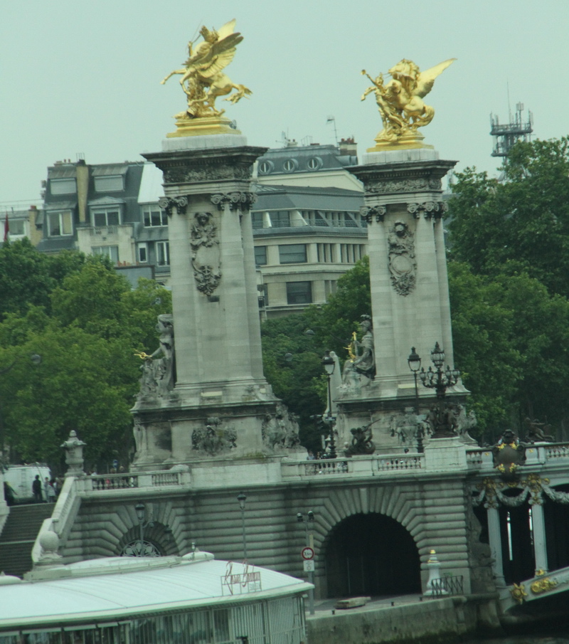 在大橋兩端人口處的立柱上分別有象徵塞納河與涅瓦河的寓意性裝飾物~這座橋稱得上金碧輝煌