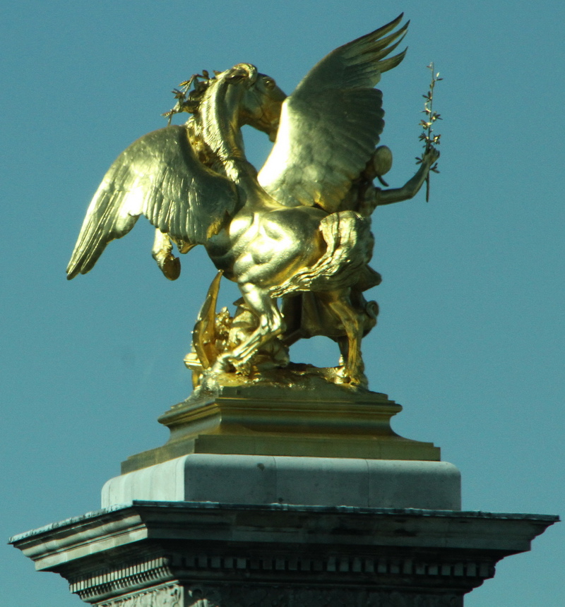 亞歷山大三世橋~~四尊金色雕像, 分別置在四座立柱之上