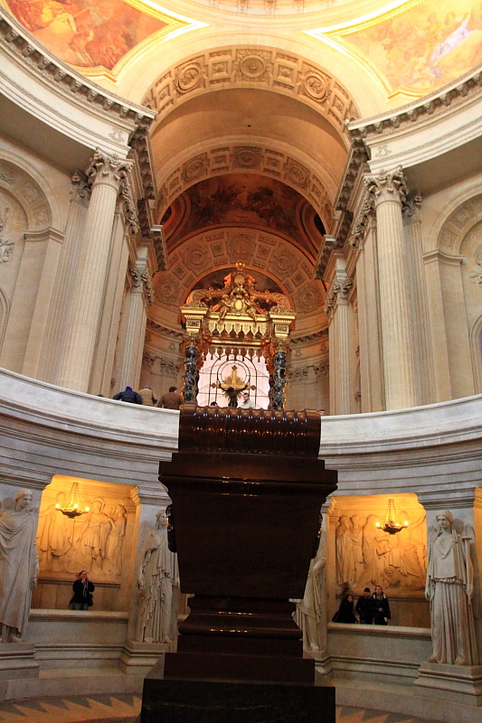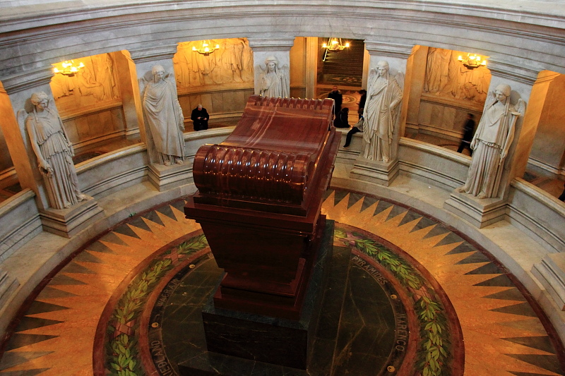 拿破崙棺槨位於一樓中,遊客自二樓環形走廊朝一樓瞻仰,這裡還有一些拿破崙的其他親屬和其他將軍的陵墓