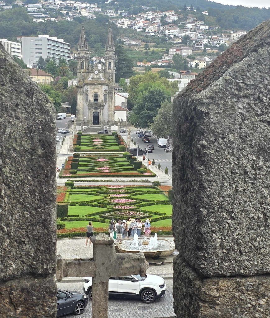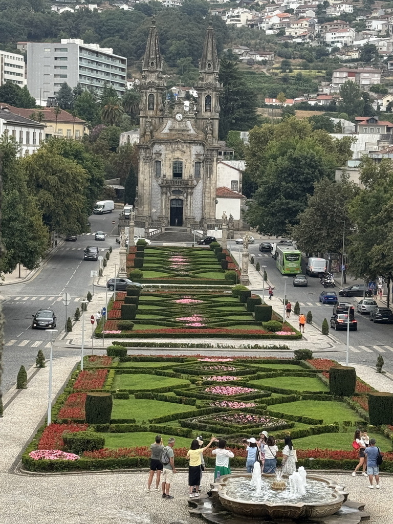從城牆上,高處看 聖母安慰教堂和前方 有點坡度的花園,真是好壯觀美麗