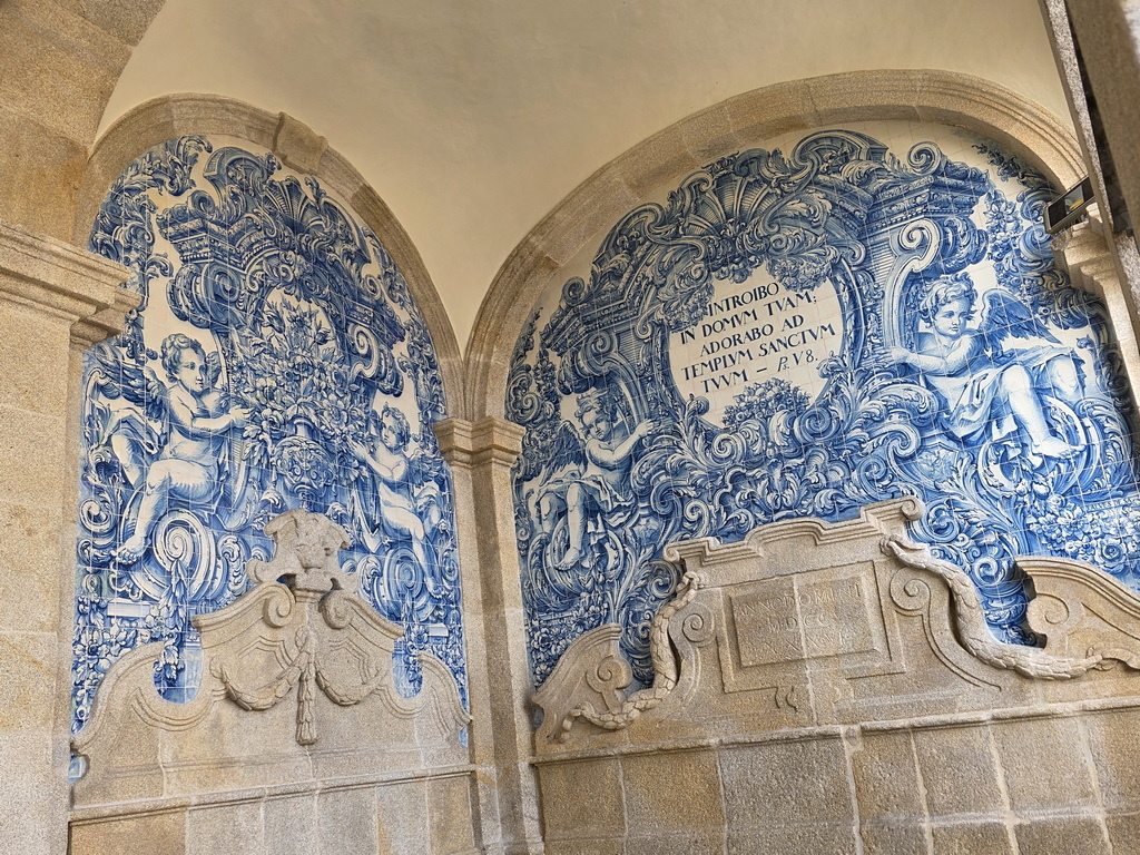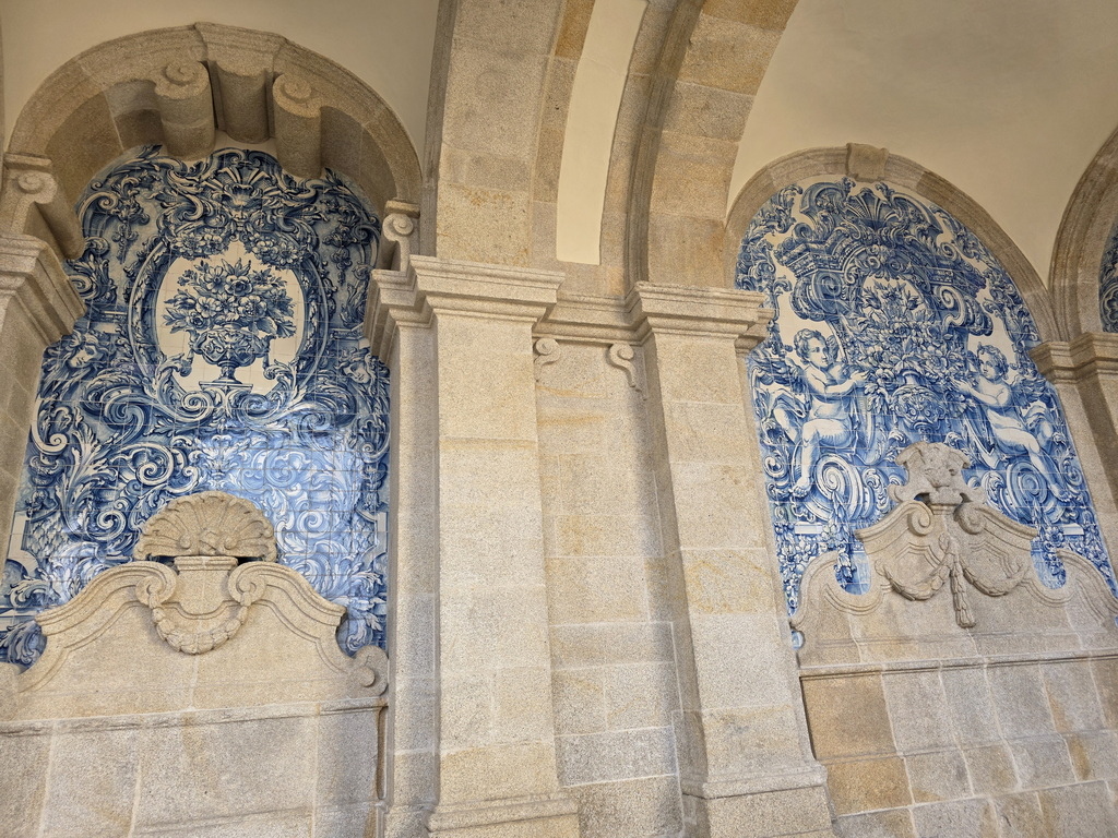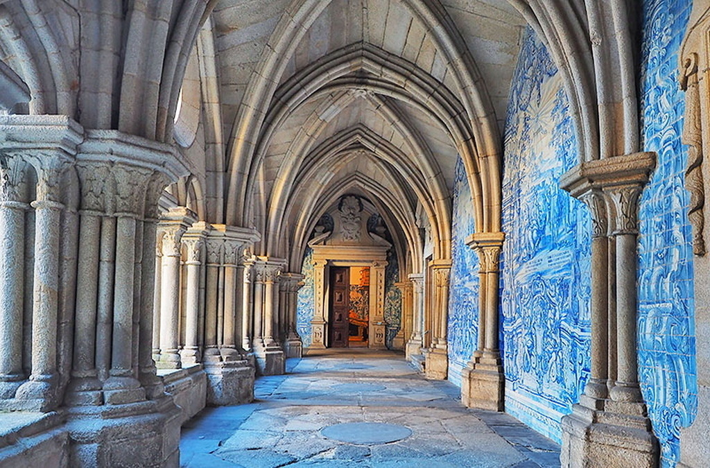 教堂的哥德式迴廊建於14-15世紀,可以通往主教座堂、其他小堂、以及2樓平台,部份牆身鋪滿大面積的藍白磁磚