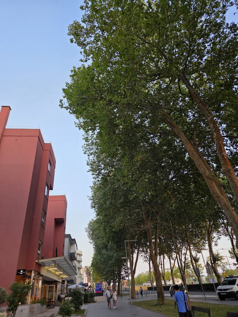 8點25分~~我們繼續沿著寬敞的人行道上 走走,看著有些人 往一個大型的建築區塊走進去,我們也跟著走進去~~