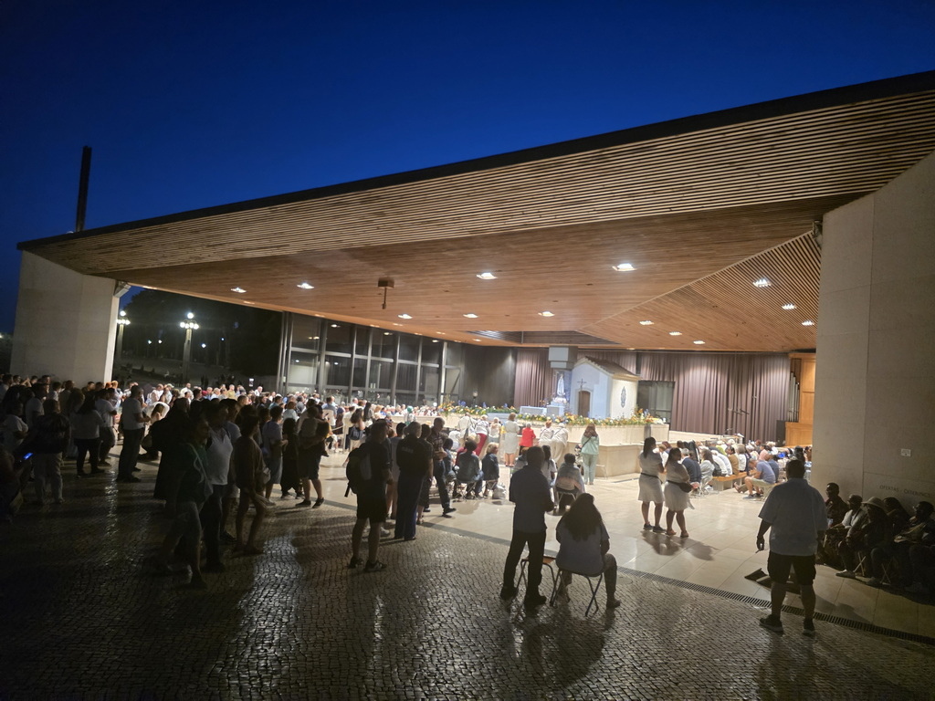 來到主道台,前方便是 法蒂瑪聖母聖殿.....(丞立的眼睛總能注意到很細微的細節啊!馬上告訴我有的信眾有用護膝..)