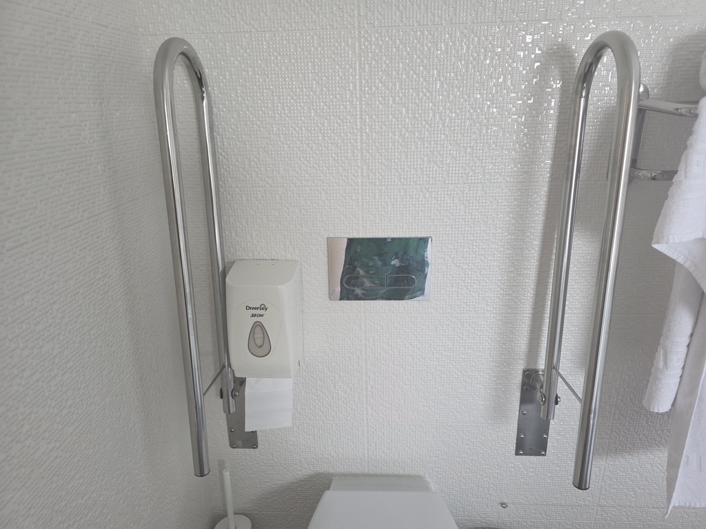 因為一打開房門,就是電梯呢!!第一次遇到這樣的房間,哈!!還有廁所 還有特別安裝 扶手,增加安全性