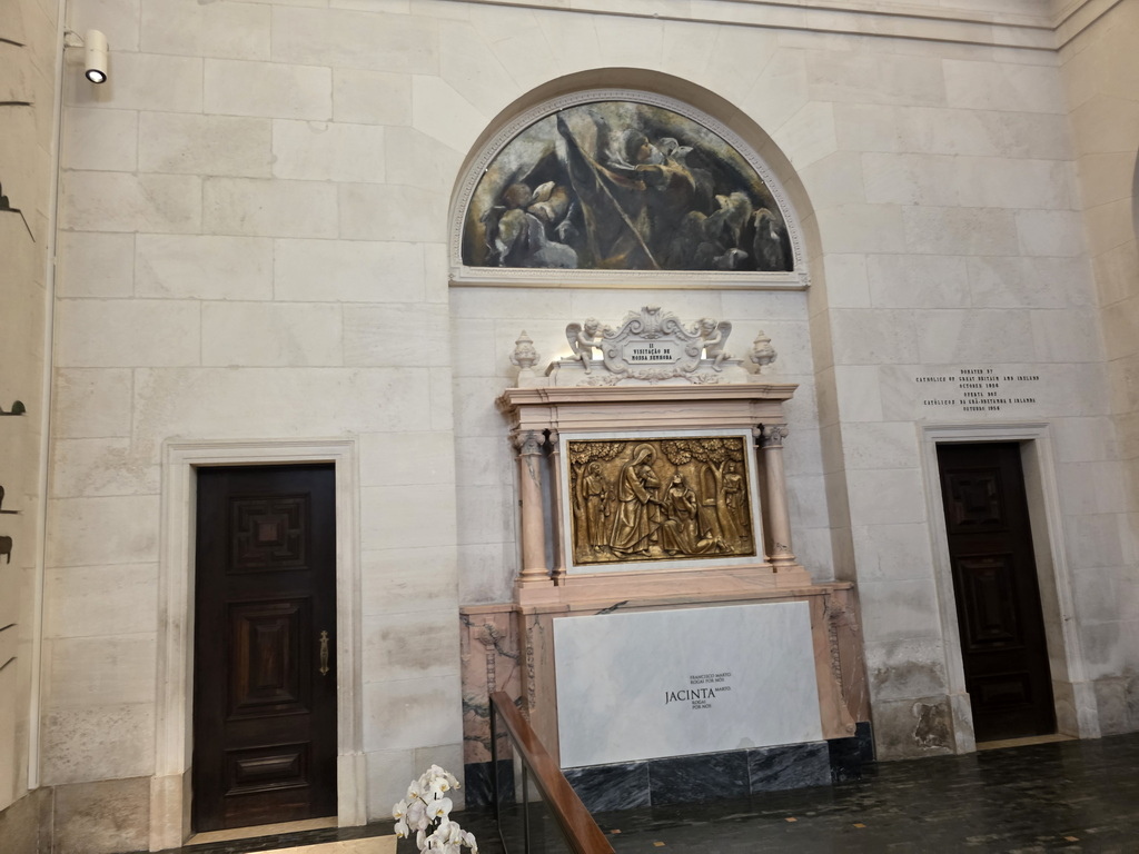 三位牧童~方濟各、雅琴達和路濟亞的墓都在殿內,花窗玻璃上描繪了聖母顯靈的場景,15個祭台獻給15個玫瑰經奧蹟