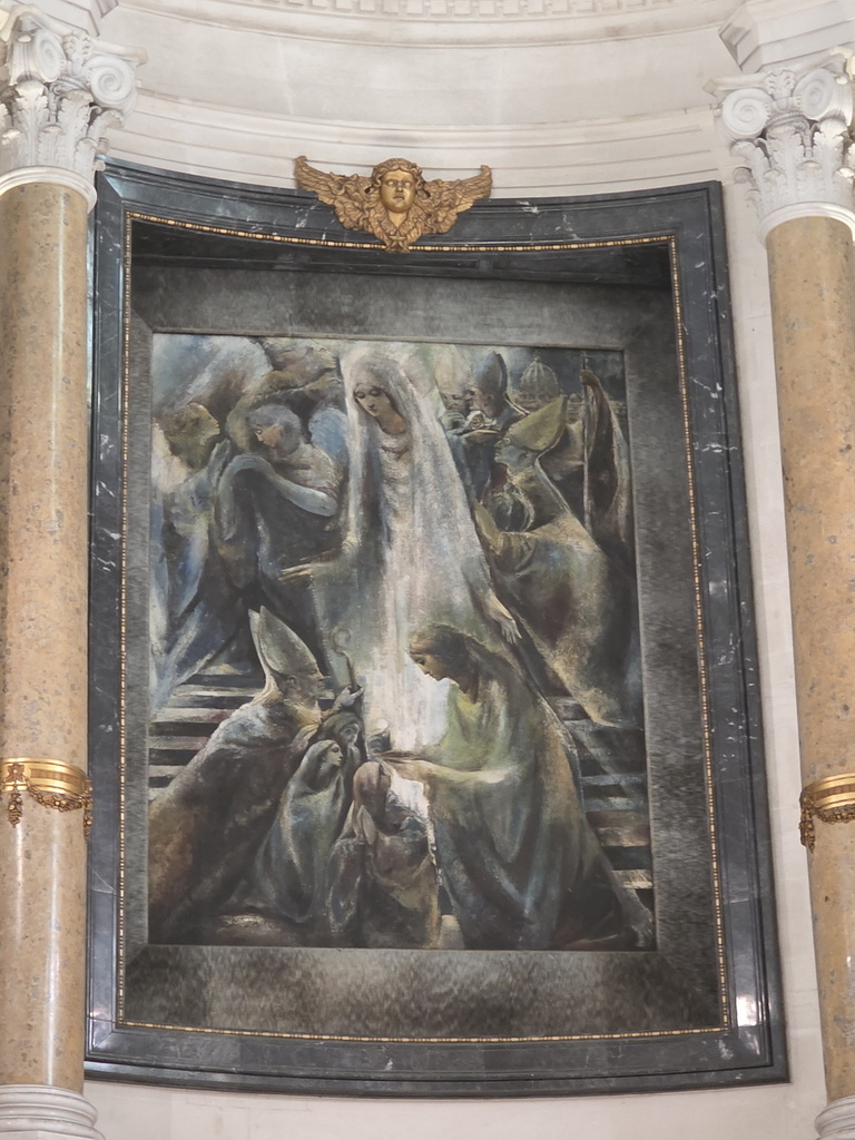 巨大的管風琴安裝於1952年,在聖殿的四個角落是四位供奉聖母無玷聖心的聖徒雕像:聖安多尼,聖道明,聖若望和匈牙利國王聖斯德望