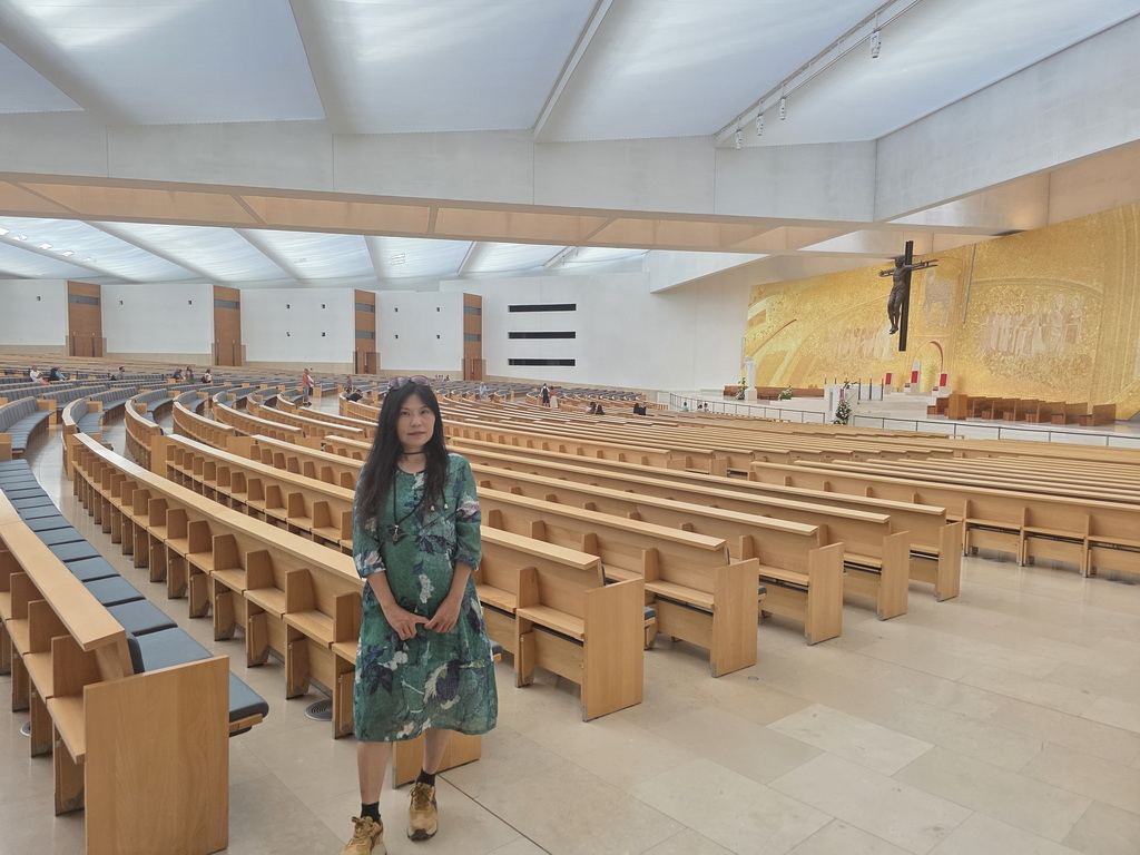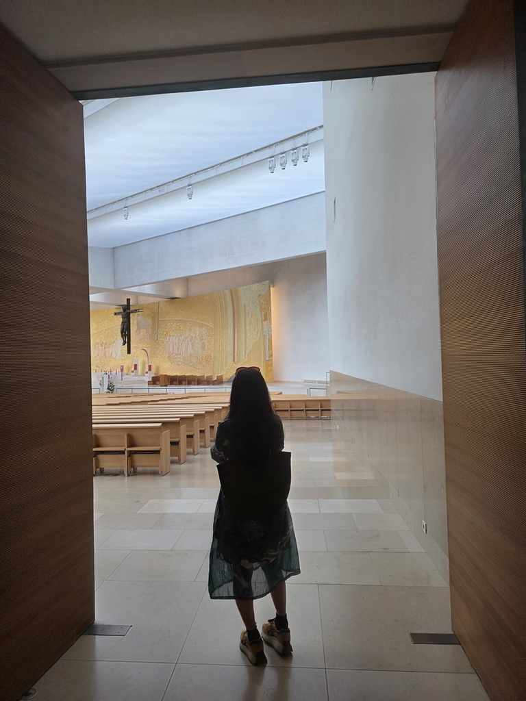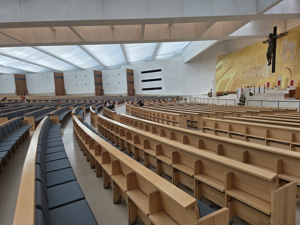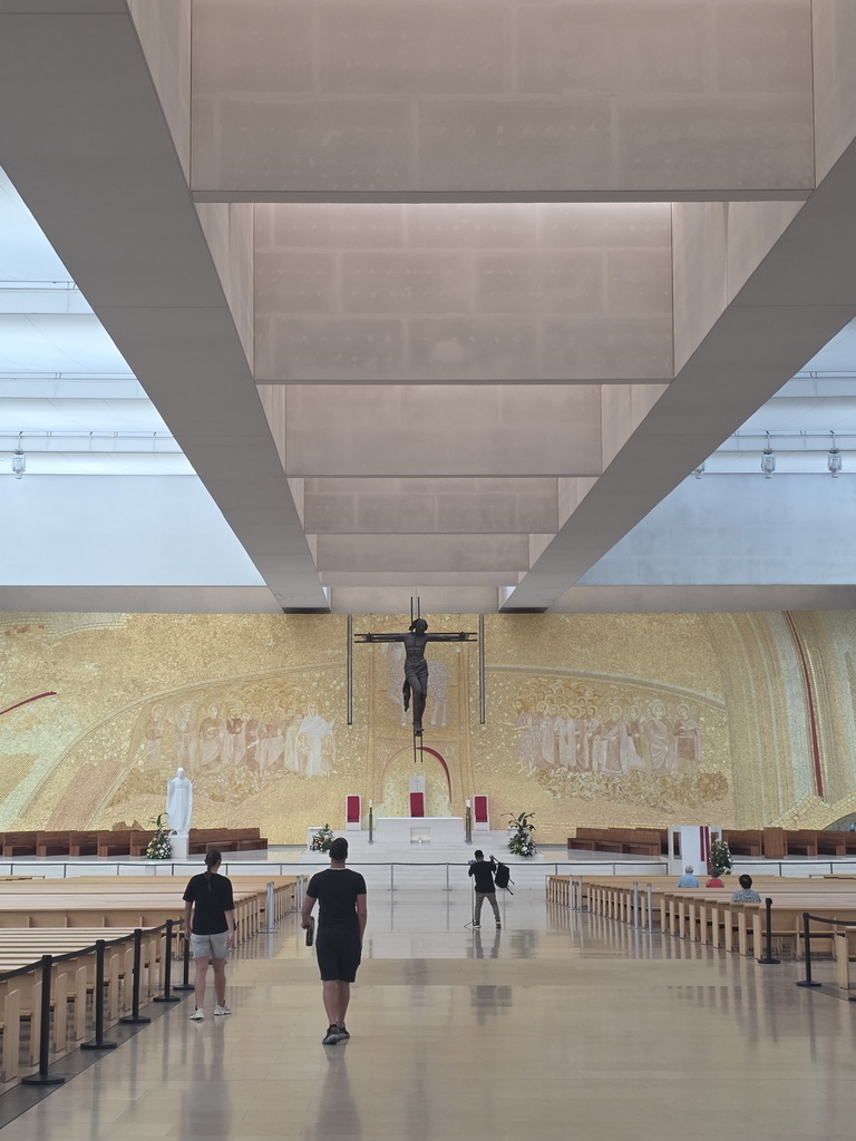 ps:法蒂瑪天主聖三教堂~ 是和玫瑰聖母聖殿遙遙對望的教堂,內裡裝潢充滿現代感